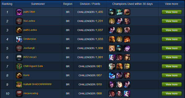 巴西服务器则呈现了双雄争霸的局面,从ID和头像来看,目前巴西服务器三甲均为巴西老牌劲旅pain战队的选手,而第六名的则应该是INTZ的选手,两队也是多次在巴西当地比赛中互有交锋,不过从胜点来看pain战队锁定三甲几乎已经是板上钉钉了。