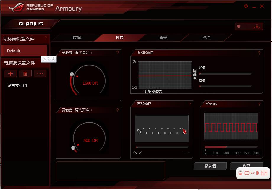 而鼠标的加速功能能够使用户在运行CAD等专业软件需要大范围移动鼠标或者玩fps游戏不需要更高精度而需要更加灵活转身的时候比较实用,与此相对还有减速的功能。直线修正的功能适合在用鼠标作图或射击游戏中平移压枪的时候开启。至于轮询率也就是俗称的鼠标回报率,一般设置在500比较好,高了电脑配置不够就会丢帧,低了会产生延迟。