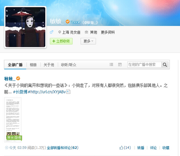 皇族媒介长微博:小狗走了 连一百块都不给我