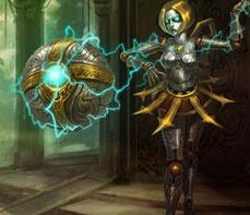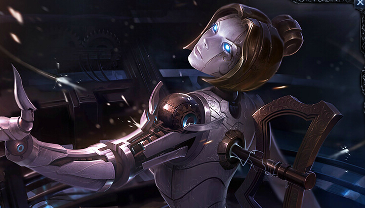 奥莉安娜的原画更新之后和原作相比可以说是天翻地覆,布里茨是充满动感的机械风,而奥莉安娜则是机械美女的代表。没有了前作的呆滞,新画的她充满了更多的“灵”。虽然在游戏界面上看上去还是老模板的样子,不过在读条阶段中绝对是一种享受。