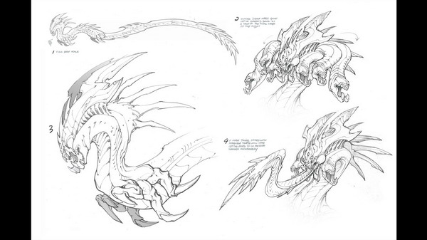 我们下了很大的功夫来设计一个不同于其他网络奇幻游戏的巨龙。我们尝试设计一个栖息在地上的巨龙,最终的定稿是一个庞大笨重并且全副武装的家伙。我们一直沉迷于方面的设计,最终也找到了 怎样设计独属于英雄联盟巨龙的方法。