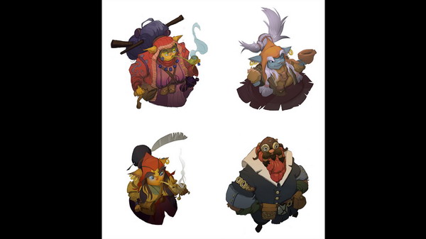 回到哀嚎深渊中来,我们设计了其中一个商人拿着一个巨大的行囊的形象。我们喜欢极了这个创意,但是在弗雷尔卓德的地形限制下,我们没办法让他这样工作。所以我们最终把“他”变成了“她”,这个改变完全适合召唤师峡谷。我们一直清楚我们需要的是那种类似于约徳尔人那样经历过海难,并骑着气球的英雄来做北边的商人。