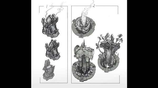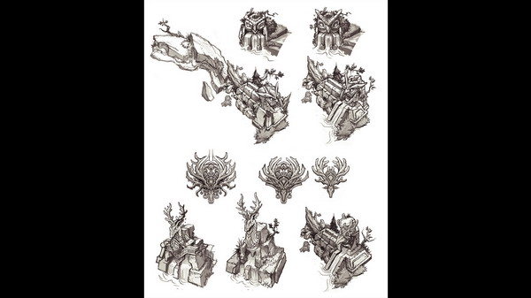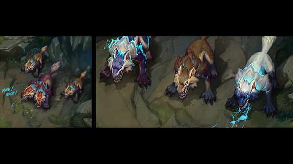 我们尝试用不同的主题风格来设计两边的野怪模型。这里是一些早期的草图。