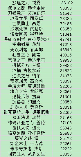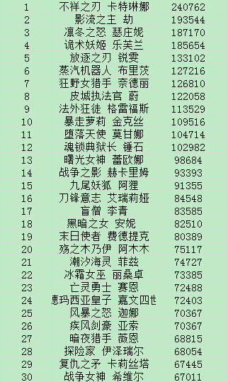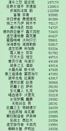 英雄榜排行
