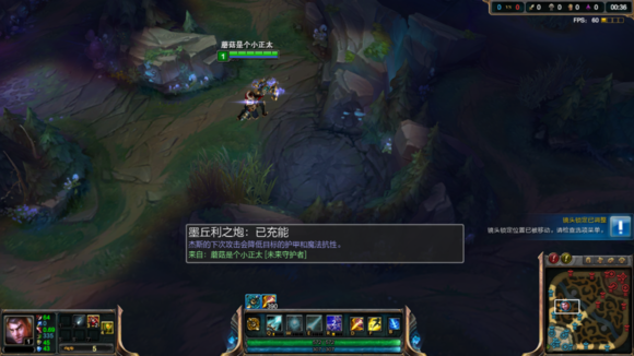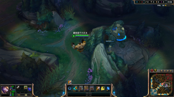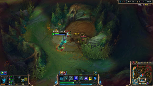 由于是自定义测试,所以BUFF刚刷出便行动。并于所示清理完,由图可知清掉对方蓝BUFF及两小怪大约费时30秒左右。这时使用掉身上剩下的饼干,还可考虑继续清野还是找机会GANK。