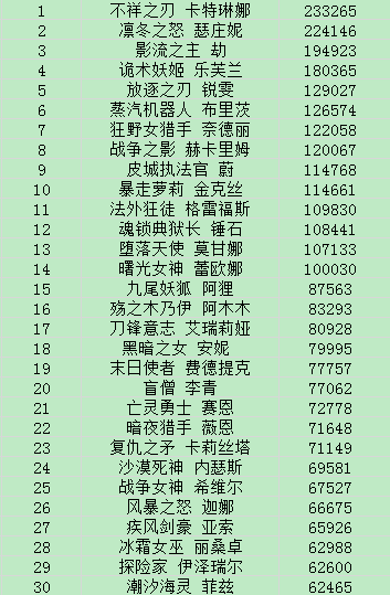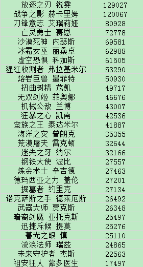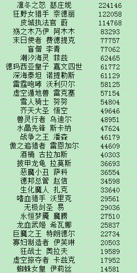 英雄排行