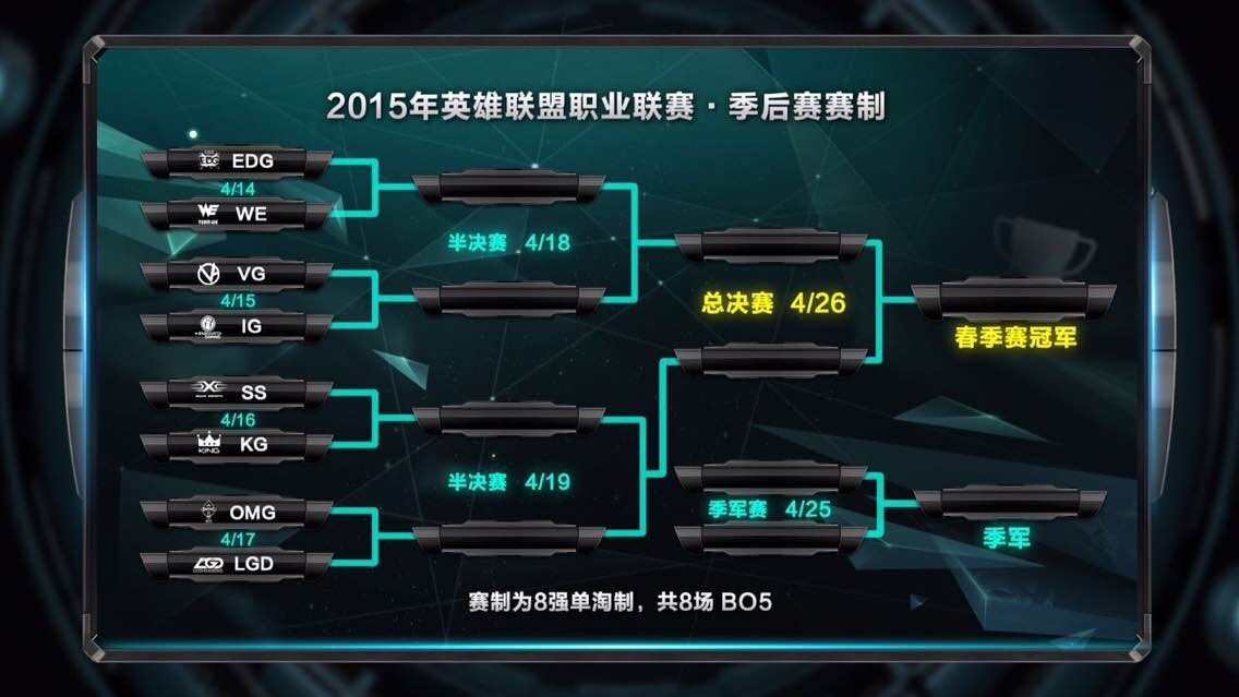 2015赛季LPL春季赛季后赛的赛制介绍与赛程预告。