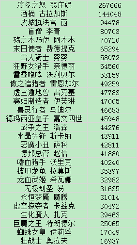 数据来源:美服单排黄金组以上召唤师的英雄数据