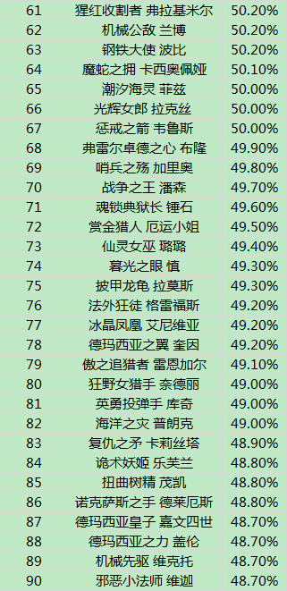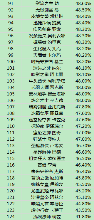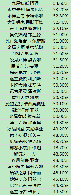 数据来源:美服单排黄金组以上召唤师的英雄数据