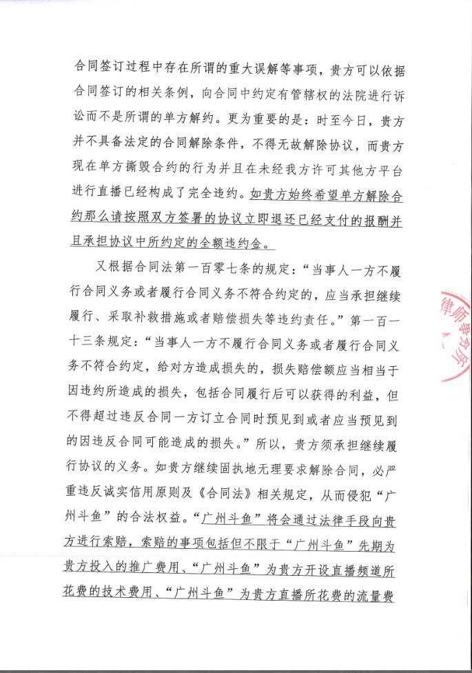 公开信里的内容,没有说明文森特会去打职业联赛,但却透漏出了一条惊人的信息,斗鱼公司可能会与文森特打官司。