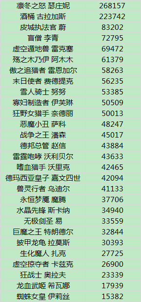 数据来源:美服单排黄金组以上召唤师的英雄数据