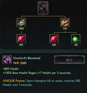 霸王血铠将会由水晶护臂合成,价格降低,并新增生命值回复效果
