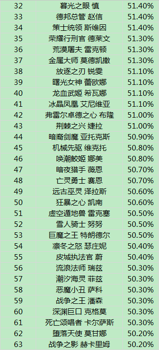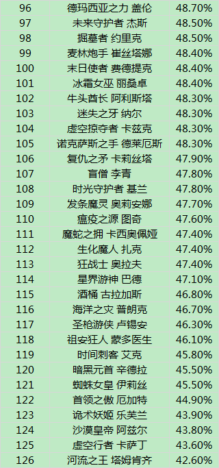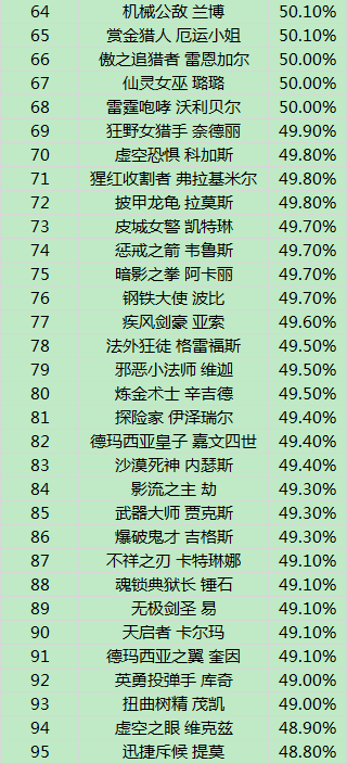 数据来源:美服单排黄金组以上召唤师的英雄数据