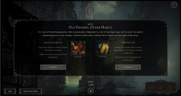 然后选择一边。在第一幕是在格雷福斯与崔斯特之间选择,注意每一幕只能选择一边。