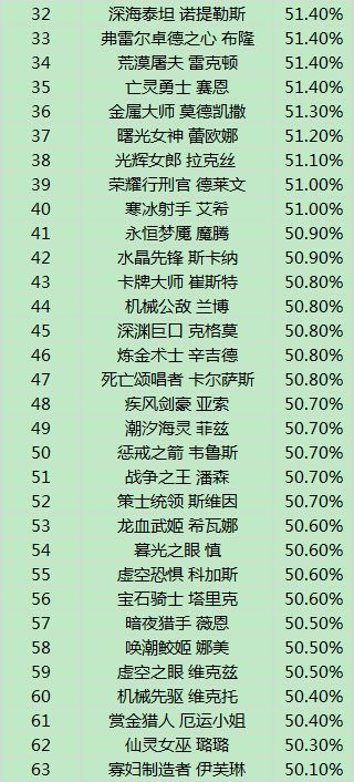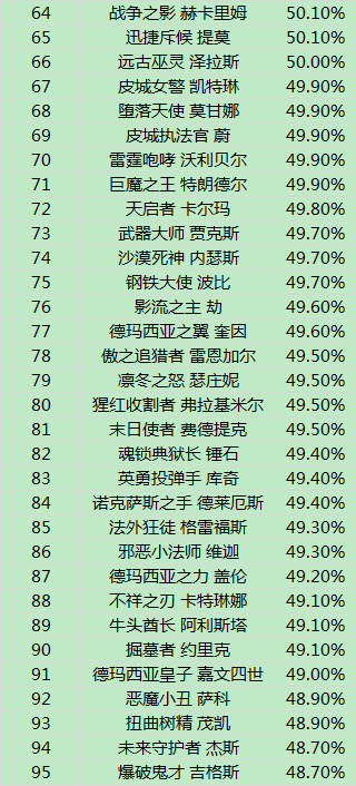 数据来源:美服单排黄金组以上召唤师的英雄数据