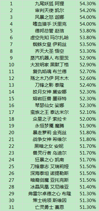 数据来源:美服单排黄金组以上召唤师的英雄数据