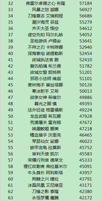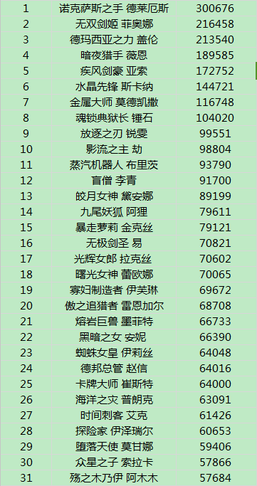 英雄排行