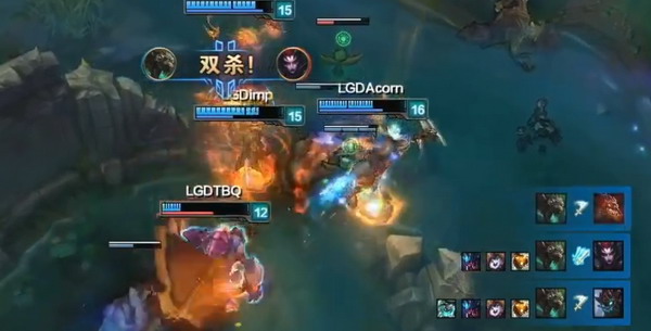 璐璐给布隆加速套盾,布隆打算用Q开团留人,这个手段十分勉强,所以LGD轻松跑开避免开团。这就是缺乏开团手段的阵容强开团的绝佳范例,对手会让你交出加速然后离开,并且自己不用交出任何技能。