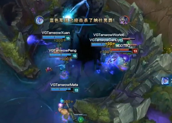 在敌方都残血并且准备逃跑时,VG进场开始收割。