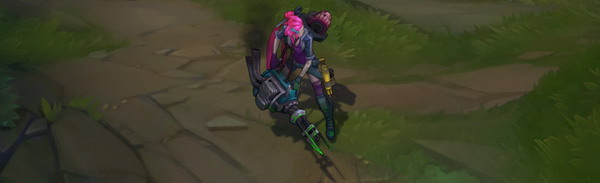 暴徒金克丝的贴图也进行了更新,包括颜色调整、左手加上了纹身。
