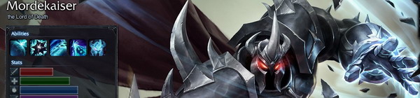 凶恶的亡灵莫德凯撒,是暗影岛中最恐怖最遭人憎恨的幽灵。他已存在了无数个世纪,通过黑暗魔法以及自己的黑暗意愿,使其免于真正的死亡。那些在战斗中胆敢面对莫德凯撒的人,都在冒着会遭受恐怖诅咒的风险:他奴役敌人的灵魂使其成为毁灭工具。
