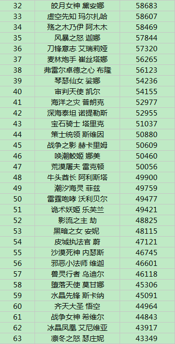 英雄排行