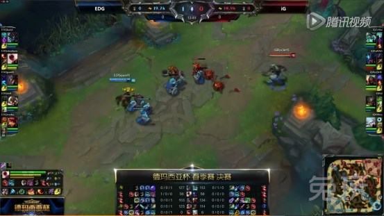 这是重庆站德玛西亚杯决赛 EDG对战IG的第一场,截图中可以很明显的看到,这纯粹是一个意识上的反蹲,EDG在红色方的红Buff野区是没有任何视野的,而这一波成功的反蹲,几乎奠定了这场比赛的胜势。