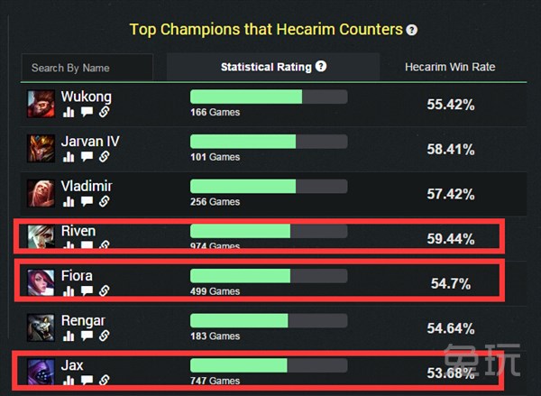(外服白金及白金以上段位人马面对其他英雄的胜率)