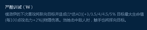 解析:W技能可以强化俄洛伊的下次普攻,并且会让她跳向目标造成百分比的伤害,如果周围有触手,那么触手也会挥向目标造成猛击。换一种思路理解,就是当你用W对敌人造成了伤害,那么周围墙壁上的触手特定的范围内,会自动对敌人造成一次Q技能伤害。