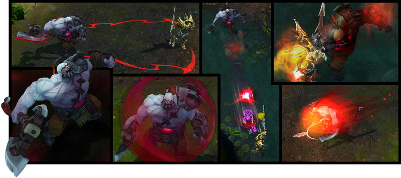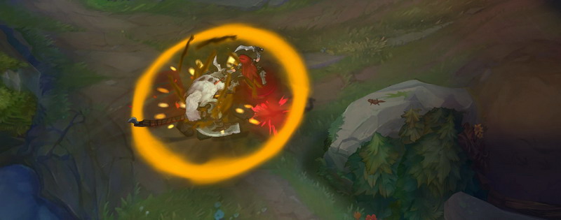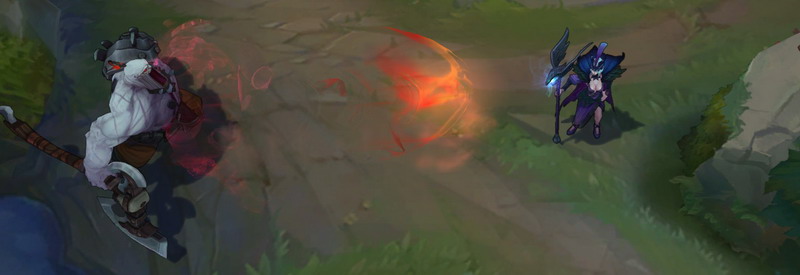 在这段时间内,他可以移动和攻击,并获得100%生命偷取效果,攻击速度大幅提高,还会对击中的敌人造成目标最大生命值10%的额外伤害。对野怪最多造成最大75点额外伤害。